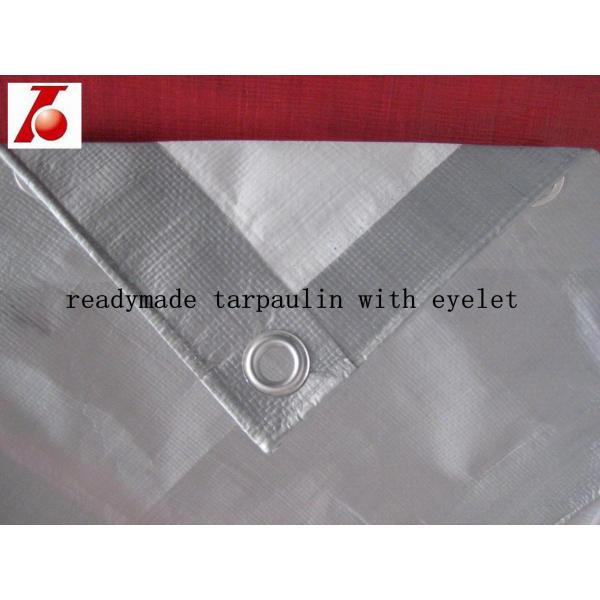 silver/white color reinforced hem with rope P.E. Tarpaulin Images |